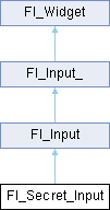 The Fl_Secret_Input class is a subclass of Fl_Input that displays its input as a string of placeholders. More...